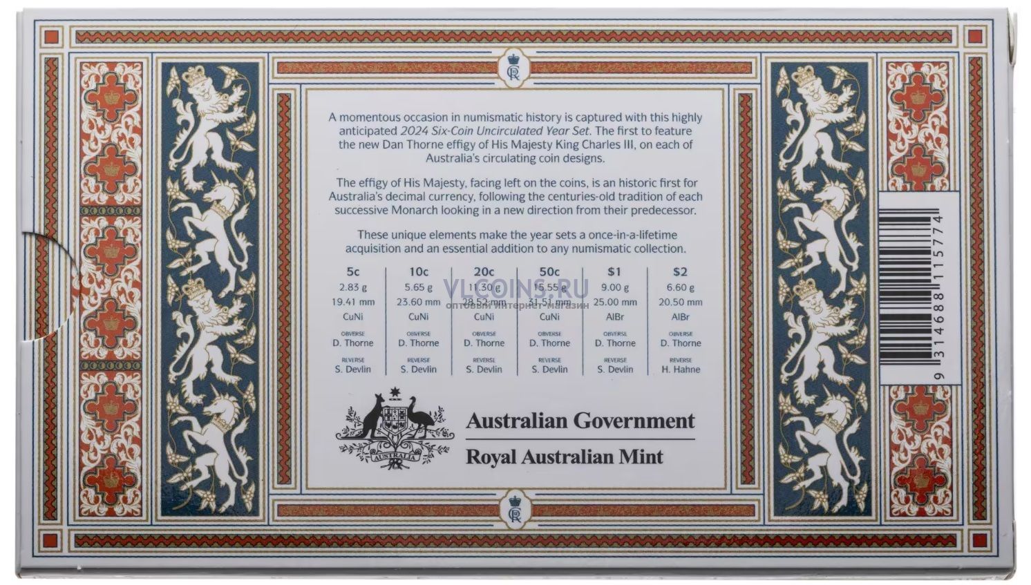 Австралия 6-2024 годовой набор "Чарльз III UNC" в футляре