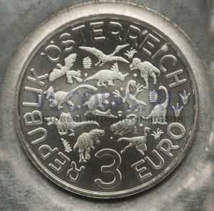Австрия 3 евро 2022 (Суперзавры: Микрораптор)