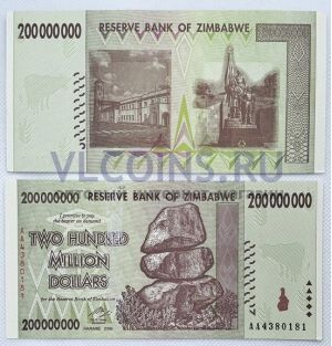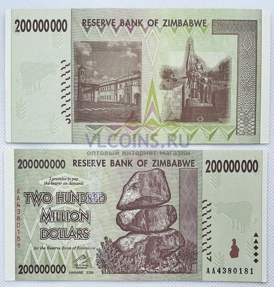 Зимбабве 200 миллионов долларов 2008 UNC