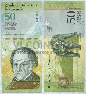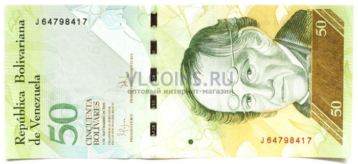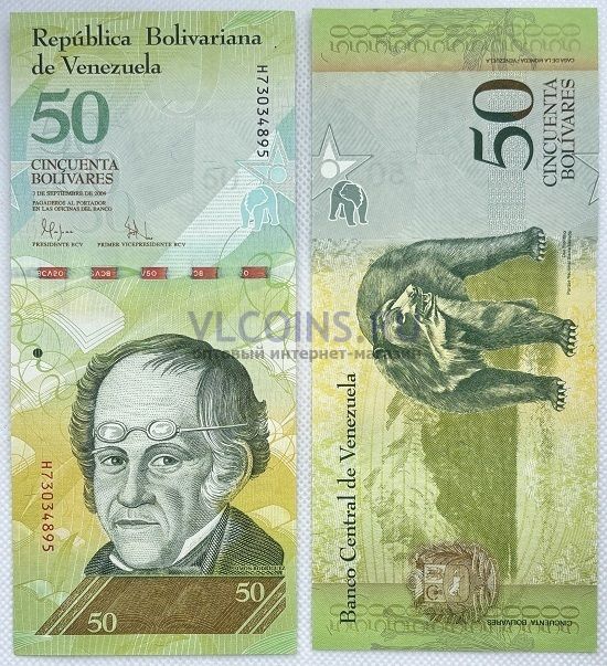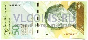 Купюра номиналом 50 боливаров выпущенная Центральным банком Венесуэлы в 2009 году.