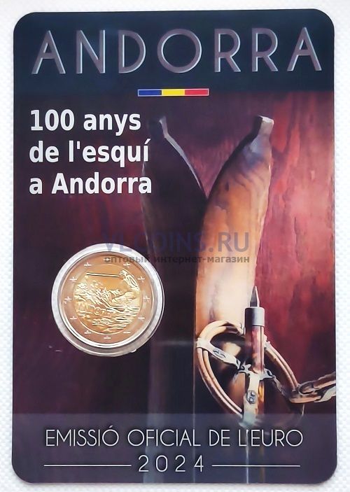 Андорра 2 евро 2024 Горные лыжи в блистере