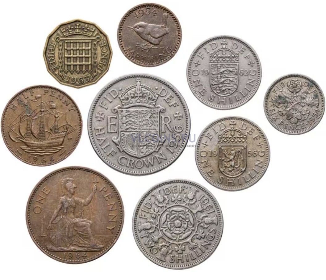 Великобритания 1 шиллинг, 1954-1970 Подробнее