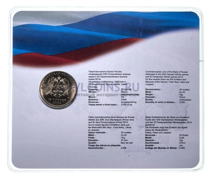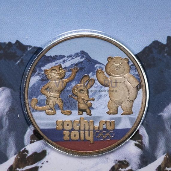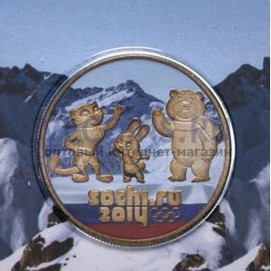 25 рублей 2012 Олимпиада в Сочи "Талисманы" цветная, в запайке