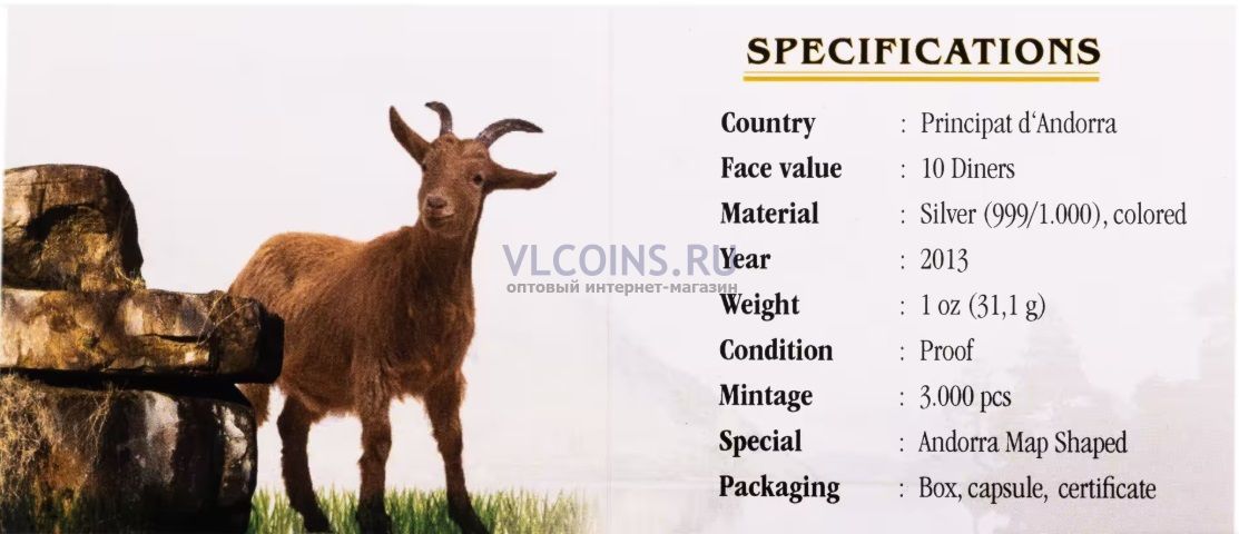 Андорра 10 динеров 2013 "Природа Андорры - Серна", в футляре с сертификатом
