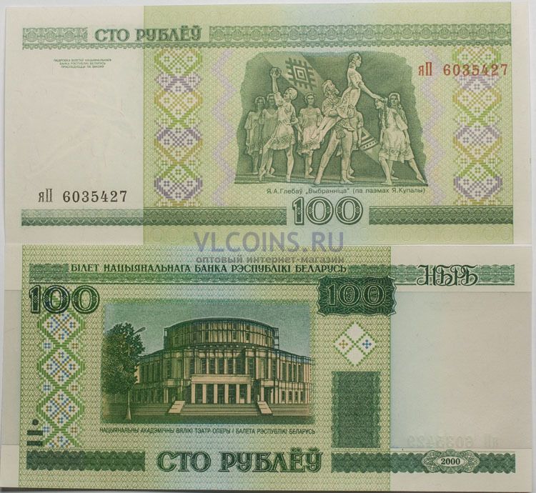 Беларусь 100 рублей 2000 Серия яП (P-26b)
