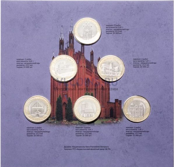 Беларусь 6-2023 2 рубля официальный набор "Памятники Архитектуры V" в буклете