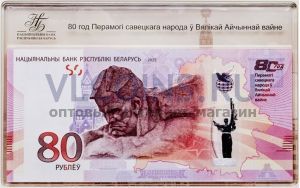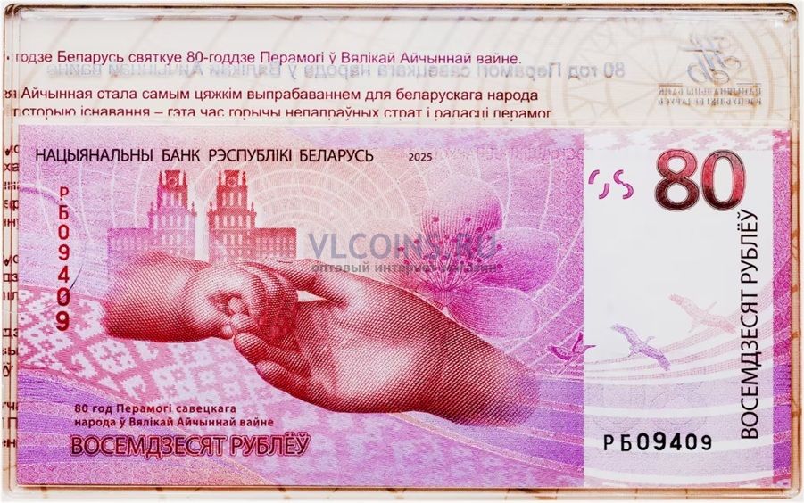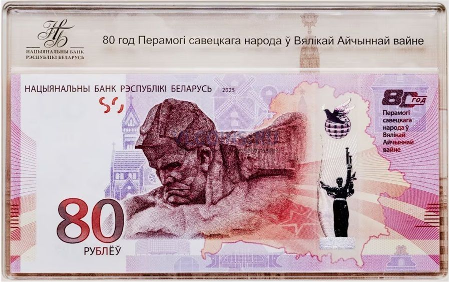 Беларусь 80 рублей 2025 "80 лет Победы в Великой Отечественной войне" ПРЕСС в футляре