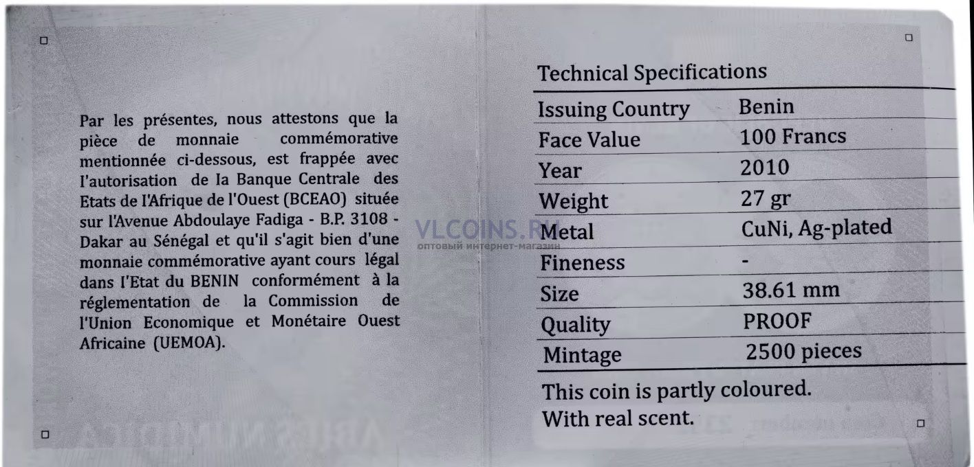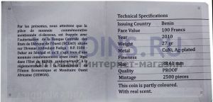 | Название на русском | Бенин 100 Западно африканский франк, 2010 |