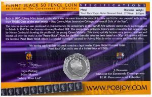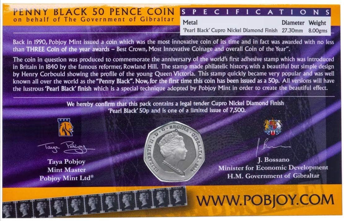 | Название на русском | Гибралтар 50 пенсов 2020 (180-летие первой почтовой марки - Черный пенни) |