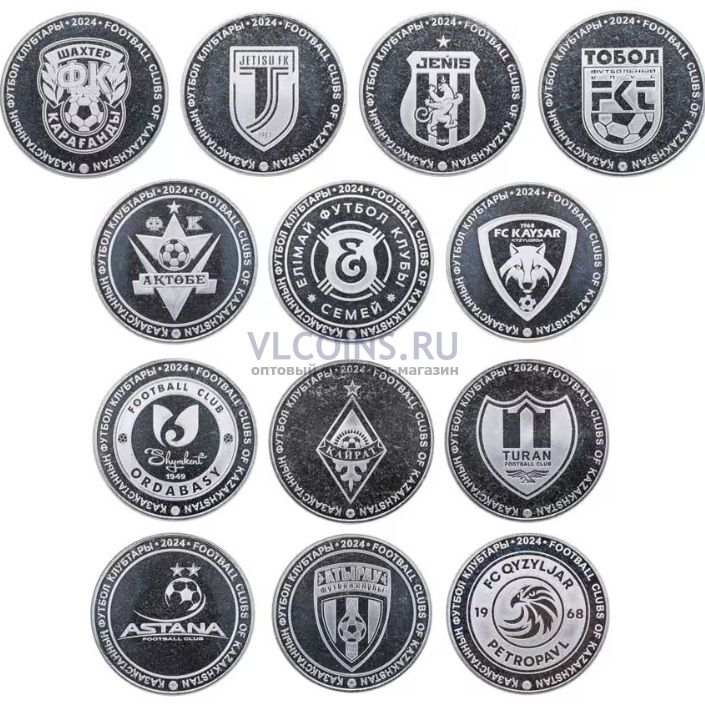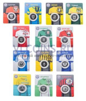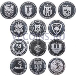 Казахстан полный набор из 13-ти монет 200 тенге 2024 "Футбольные клубы Казахстана" в буклетах