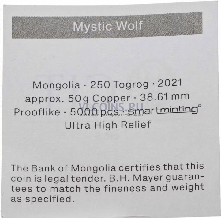 | Название на русском | Монголия 250 тугриков 2021 (Мистический волк) |