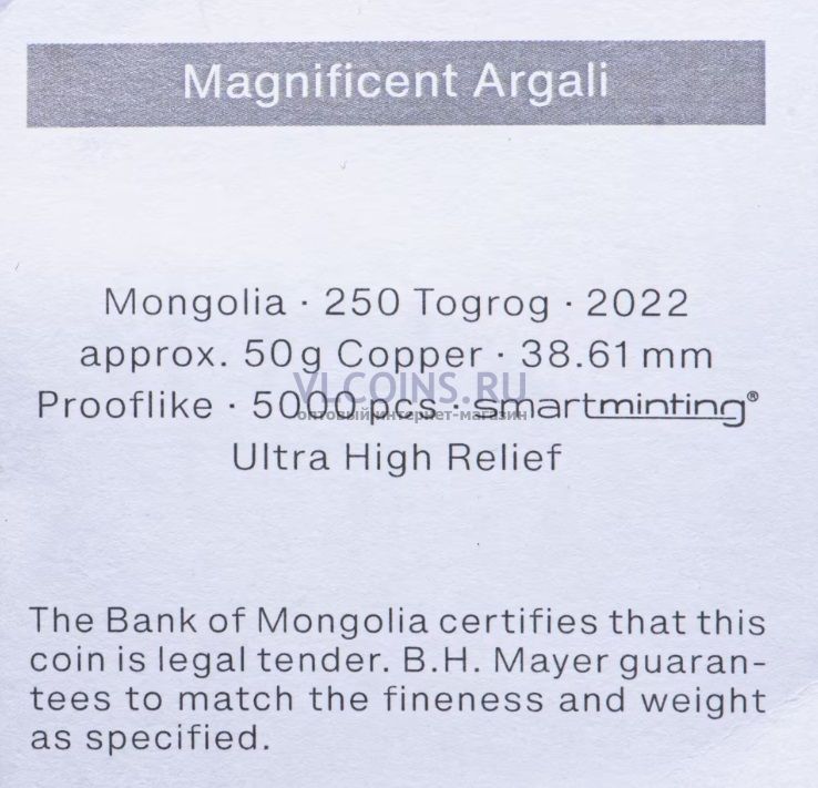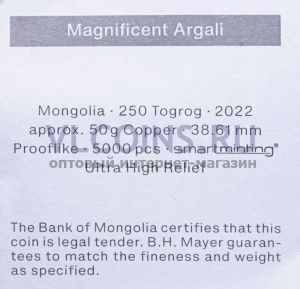| Название на русском | Монголия 250 тугриков 2022 (Великолепный архар) |
