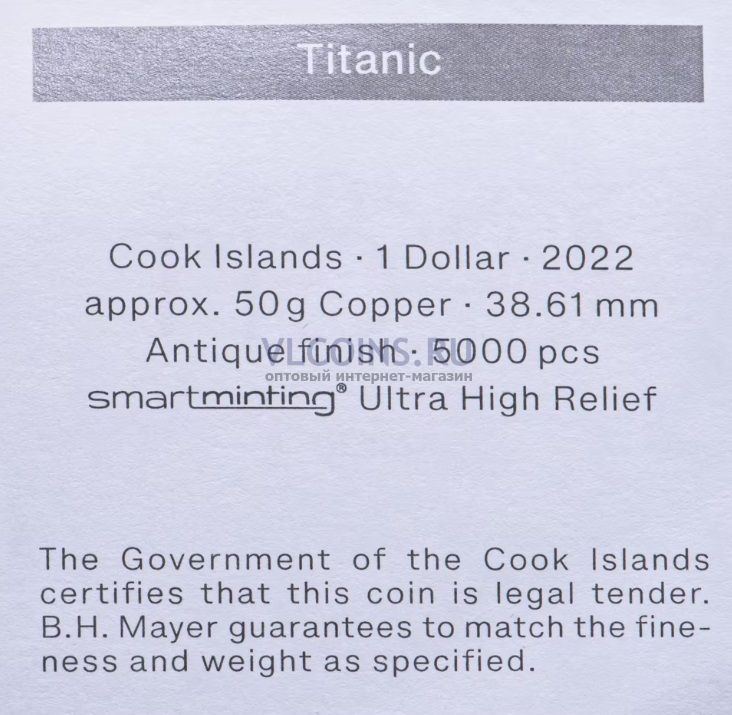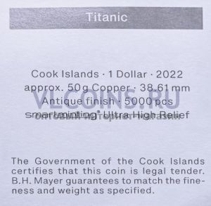 | Название на русском | Острова Кука 1 доллар 2022 (Титаник) |