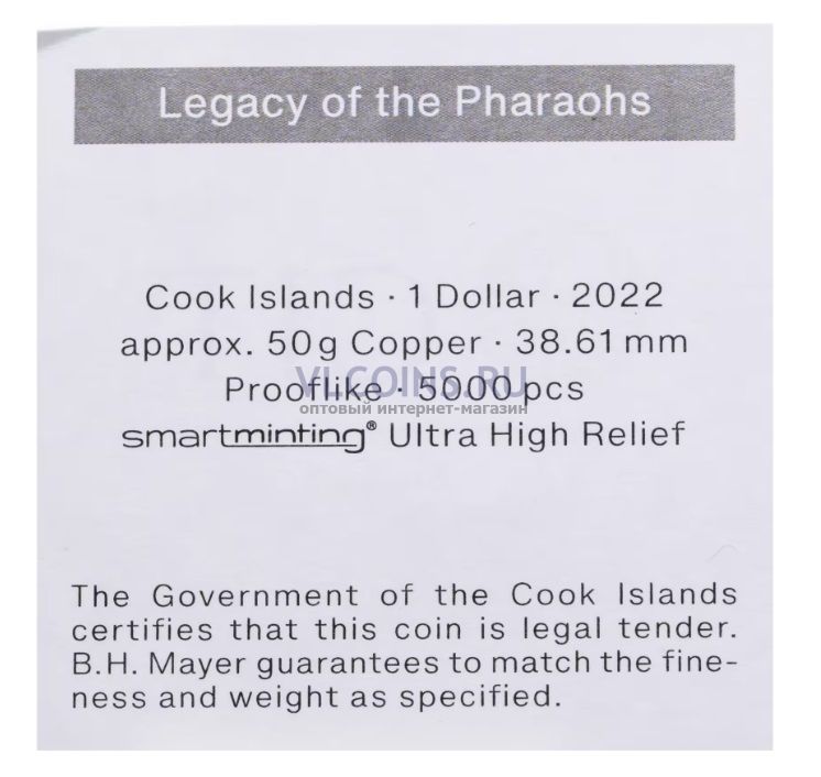 | Название на русском | Острова Кука 1 доллар 2022 (Наследие фараонов) |