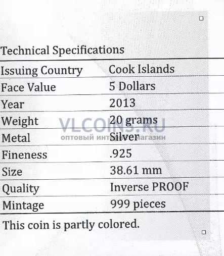 | Название на русском | Кука, острова 5 Доллар Островов Кука, 2013 |