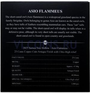 Самоа 25 центов 2025 "Болотная сова" в футляре