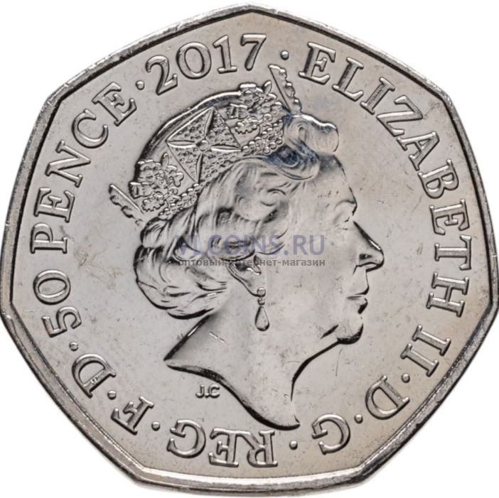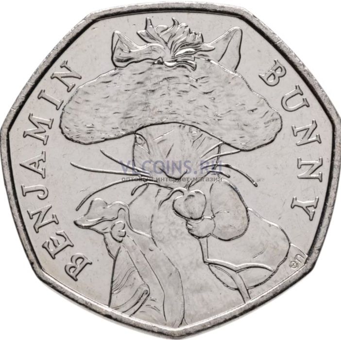 Великобритания 50 пенсов 2017 "150 лет со дня рождения Беатрис Поттер, Бенджамин Банни"