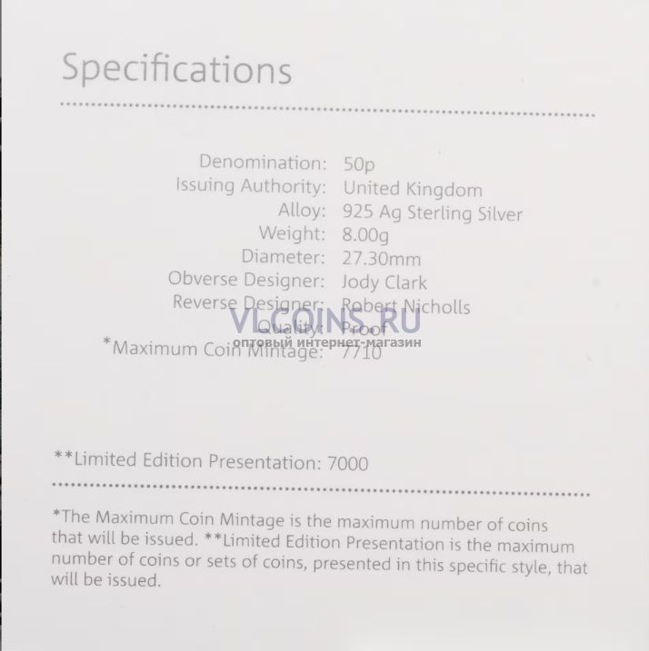 Название на русском | Великобритания 50 пенни 2020 (Динозаврия: Гилеозавр) |