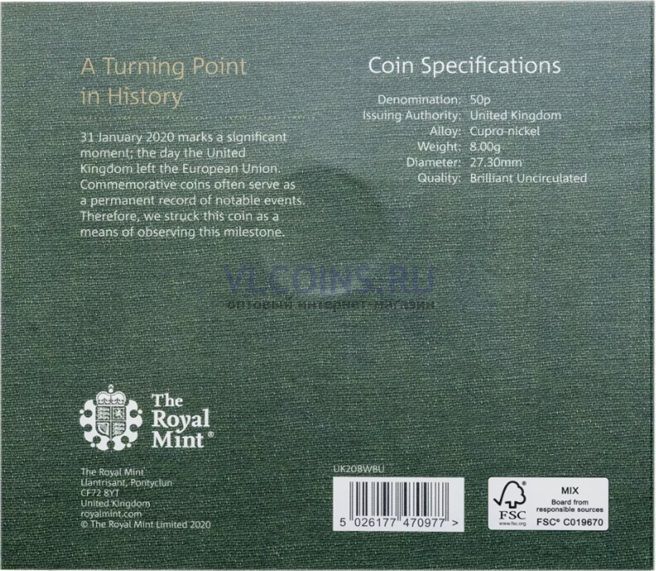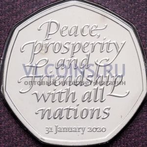 Великобритания 50 пенсов 2020 "Выход Великобритании из Европейского Союза Brexit" в буклете