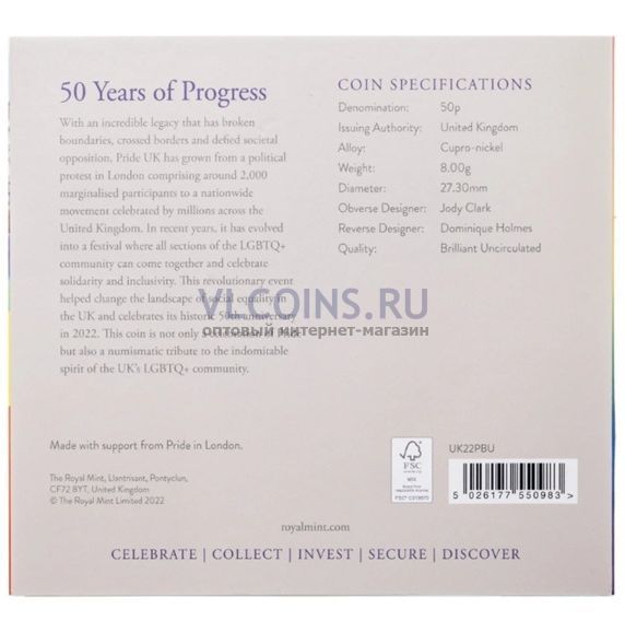 Великобритания 50 пенсов 2022 "50 лет прайда Pride" в буклете