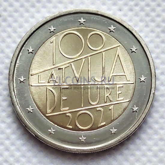 Латвия 2 евро 2021 (100-летие признания Латвии де-юре)