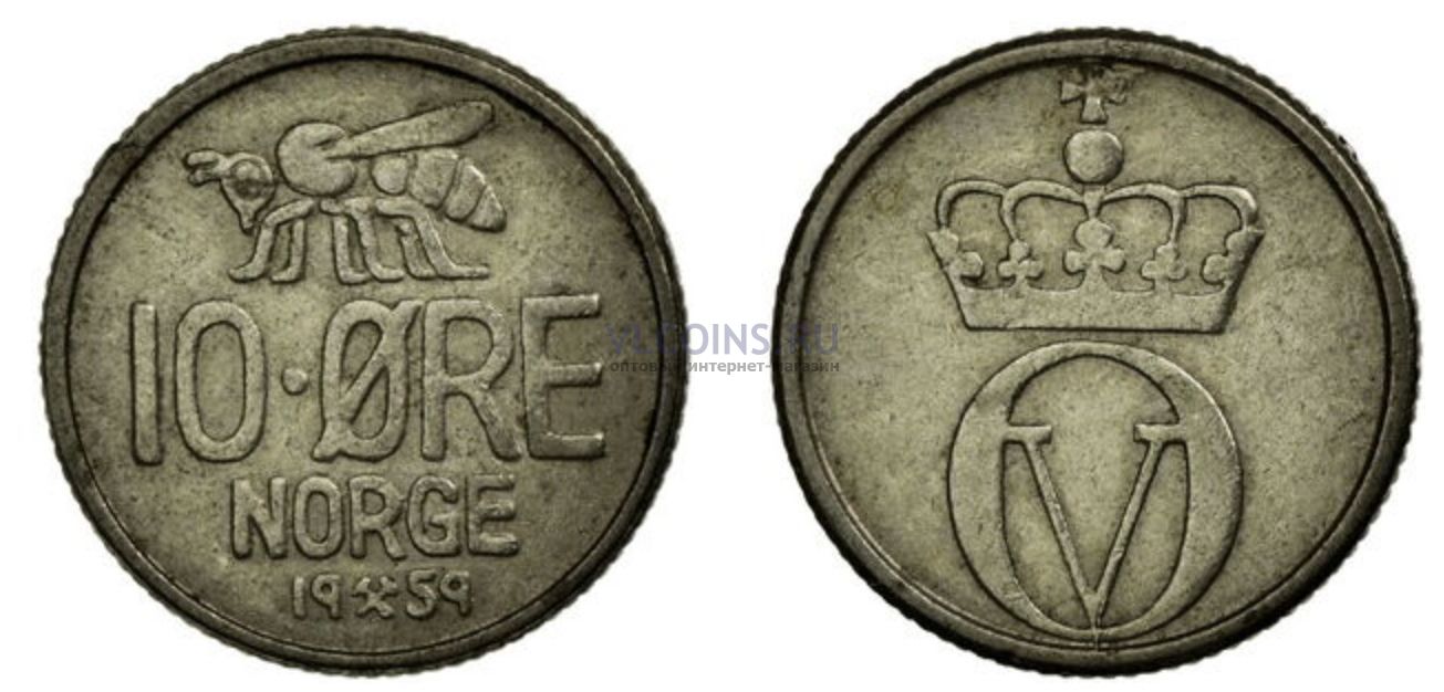 Название на русском | Норвегия 10 Норвежские эре, 1959-1973 |