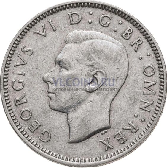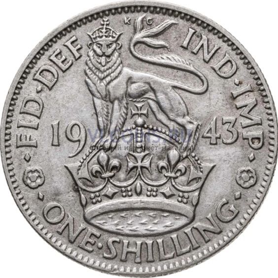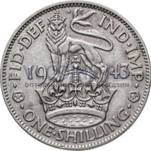 Великобритания 1 шиллинг 1943 Георг VI; лев стоит (серебро VF-XF)