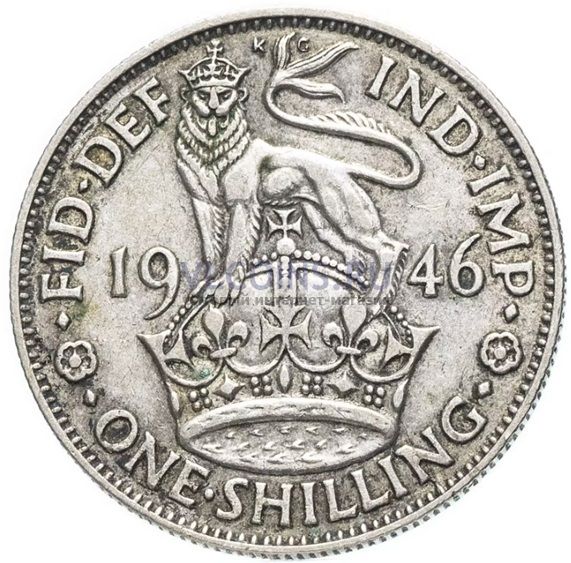 Великобритания 1 шиллинг 1946 Георг VI; лев стоит (серебро VF-XF)