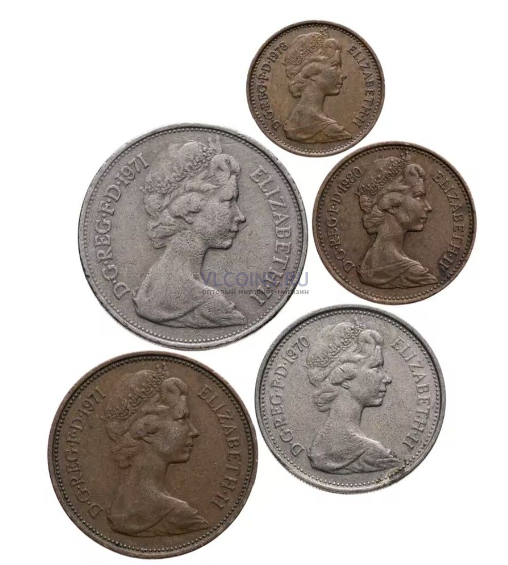 Великобритания 5-1968-1981 молодая королева Елизавета II (VF-XF)
