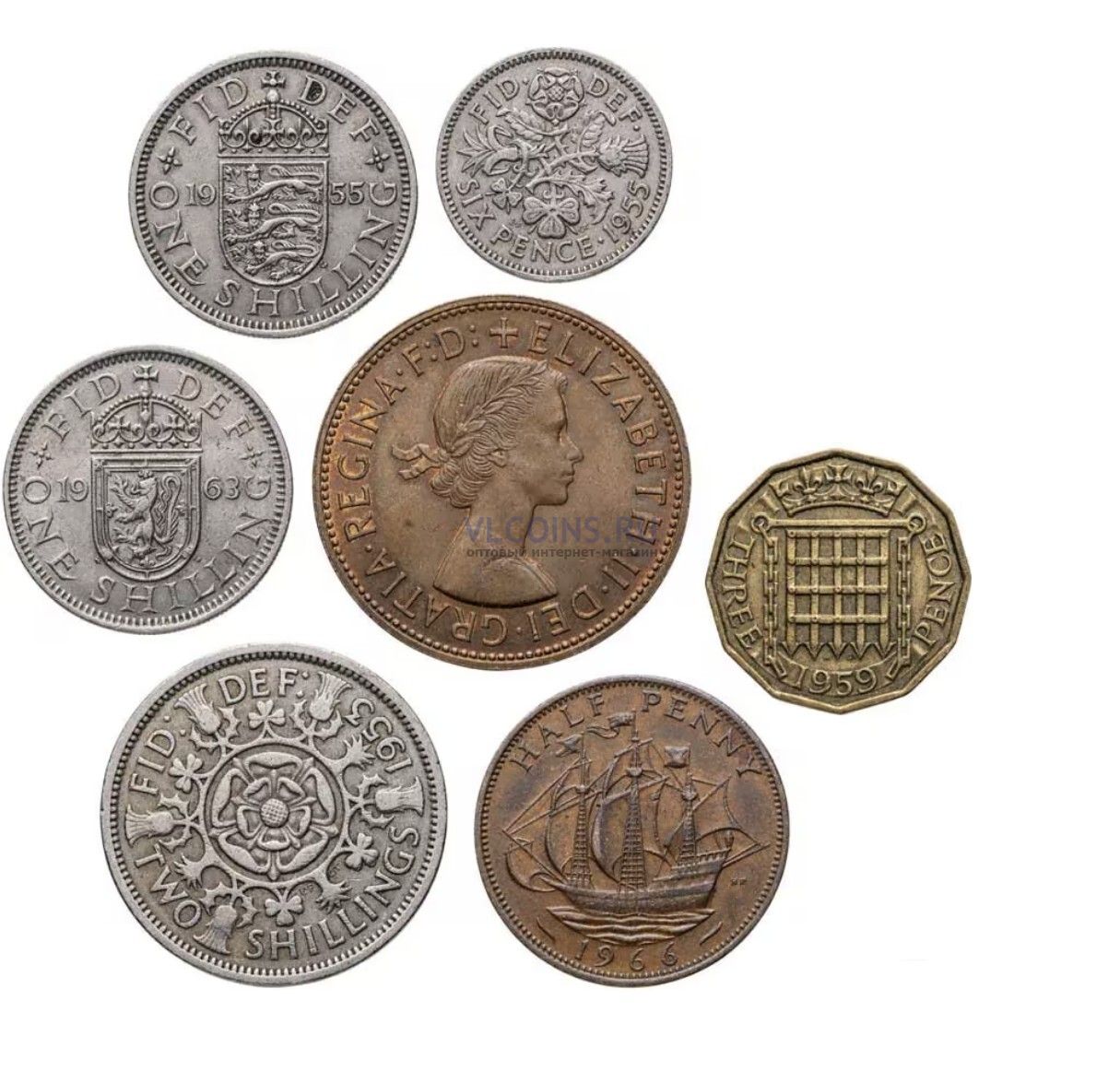 Великобритания 1 шиллинг, 1954-1970 Подробнее